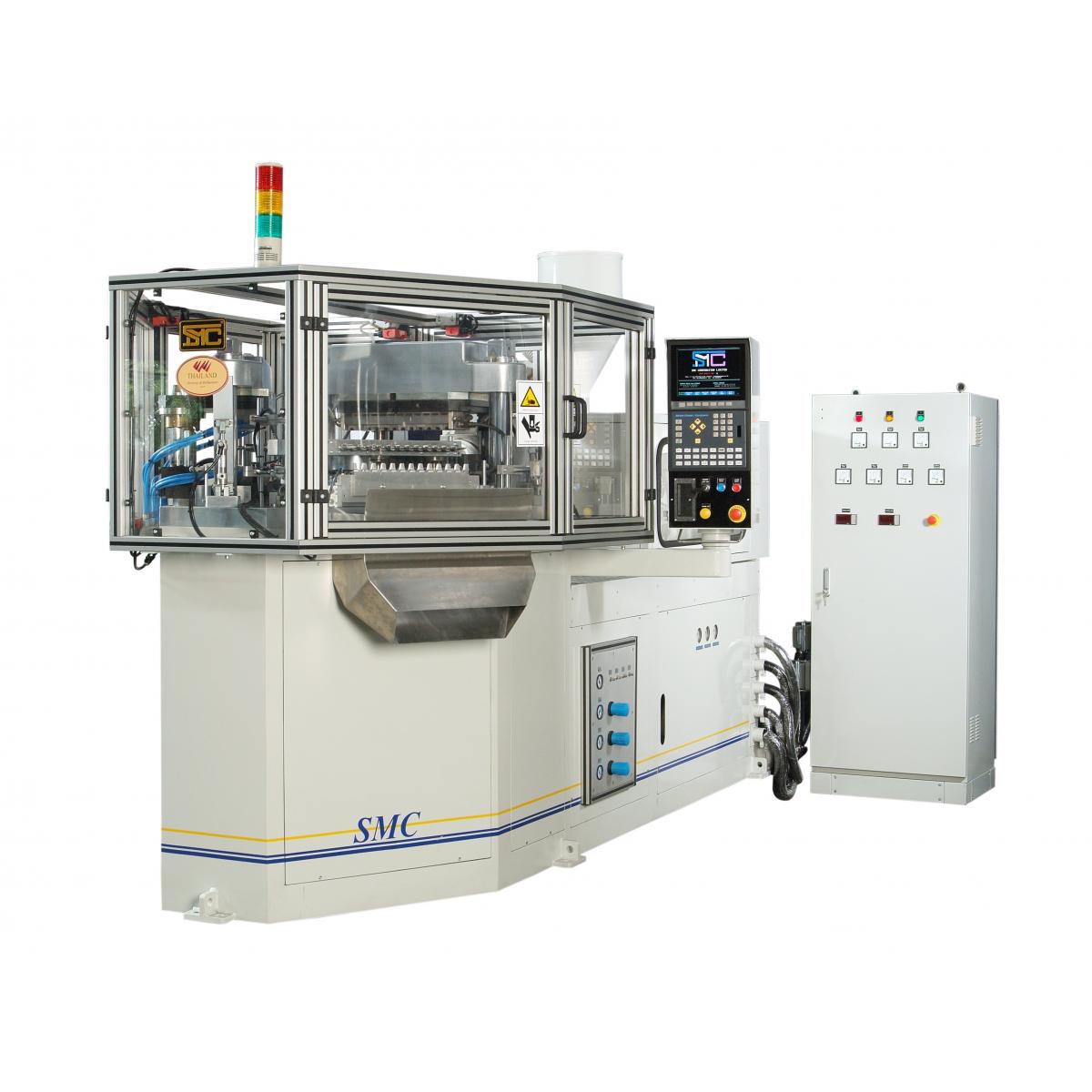 This horizontally set-up SMC Injection Blow Moulding machine series can be equipped with 20-24 cavities of small containers (5ml eye drops for example) and at high speed production. This is suitable for high volume of production for pharmaceutical, cosmetic, food and consumers industries. Machine Features: