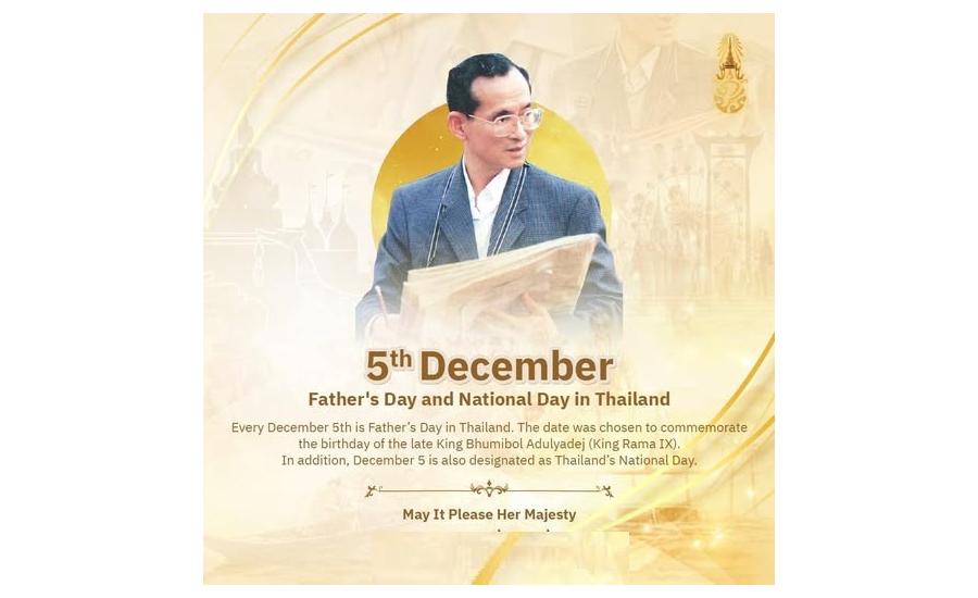 Please be informed that our company will be closed on Friday 5th of December as Thai Father’s Day.